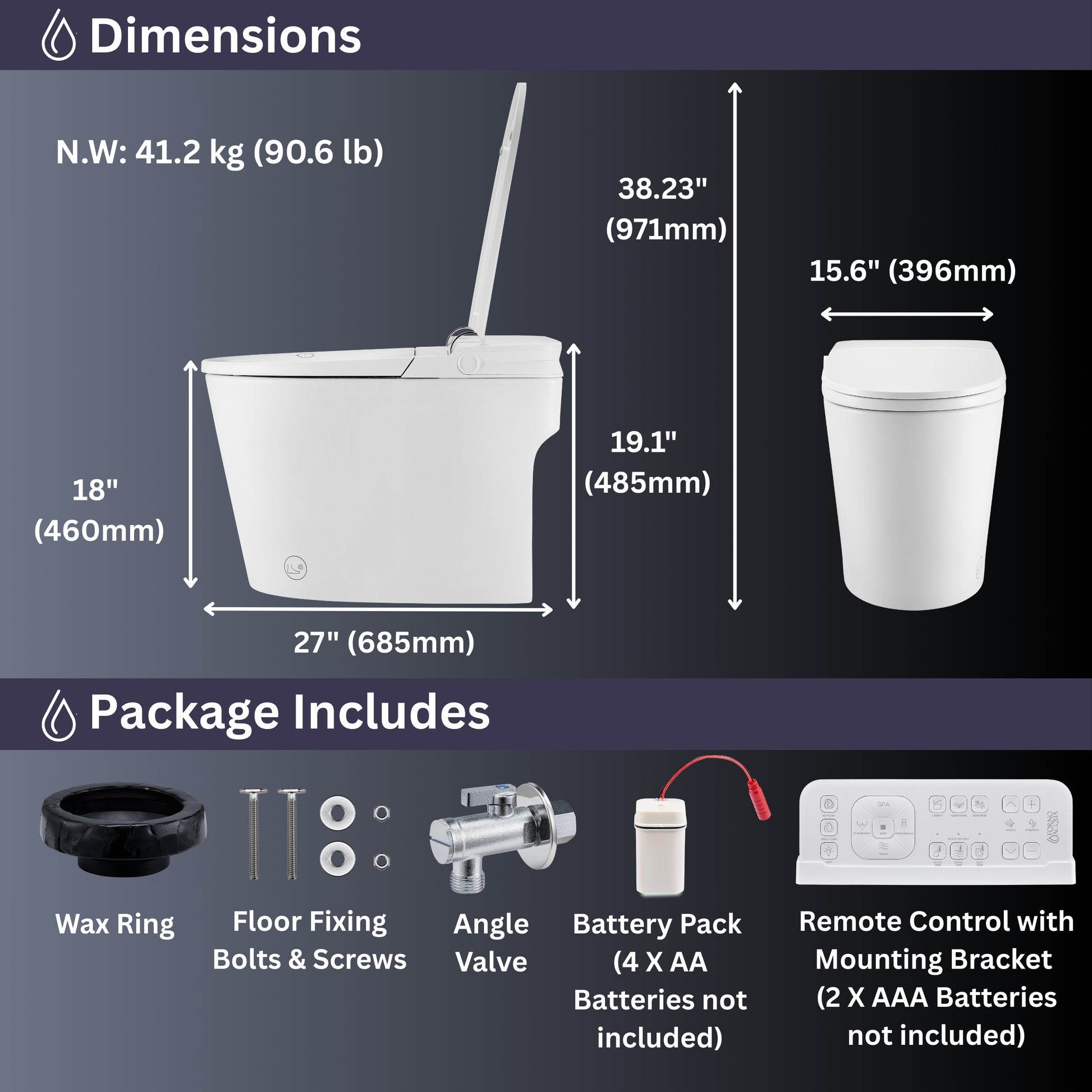 FORNO ACQUA Luxurious Super Smart Toilet. Includes Bidet, Heated Seat, Auto Flush, Auto Lid, Powerful Flush, Ideal for master bathrooms.