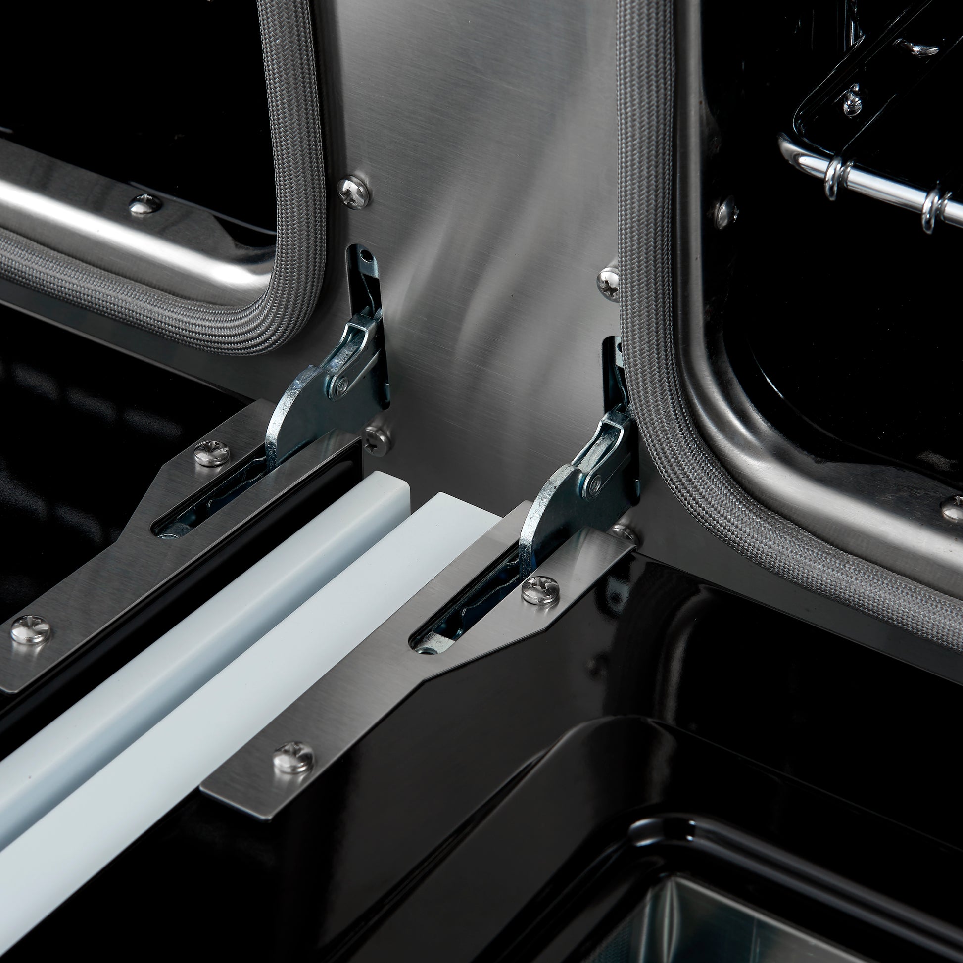 * Continuous cast-iron grates deliver even heat, ensuring stable cookware placement and smooth movement across the cooktop.