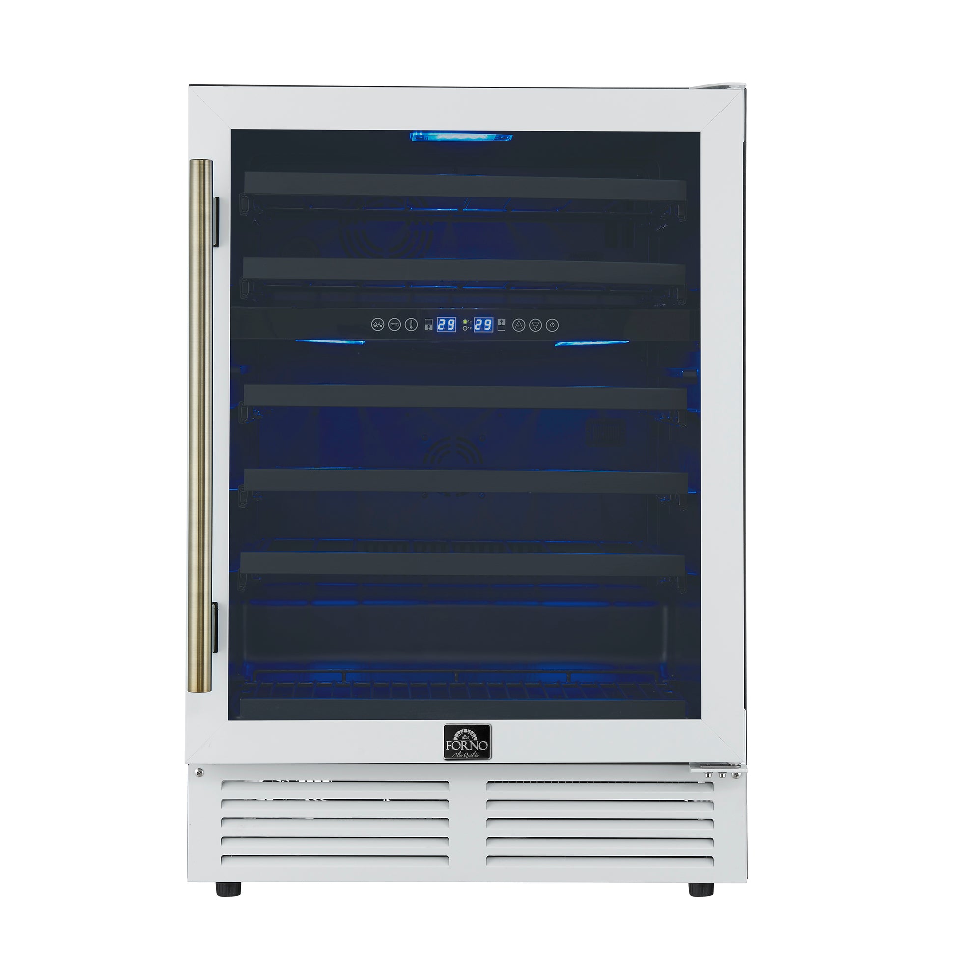 Forno Bacchino 24 Inch Wine Cooler, White with Antique Brass Handles, with LED Lighting, Triple Glass Door, 51 Bottle Capacity, Built-In or Freestanding