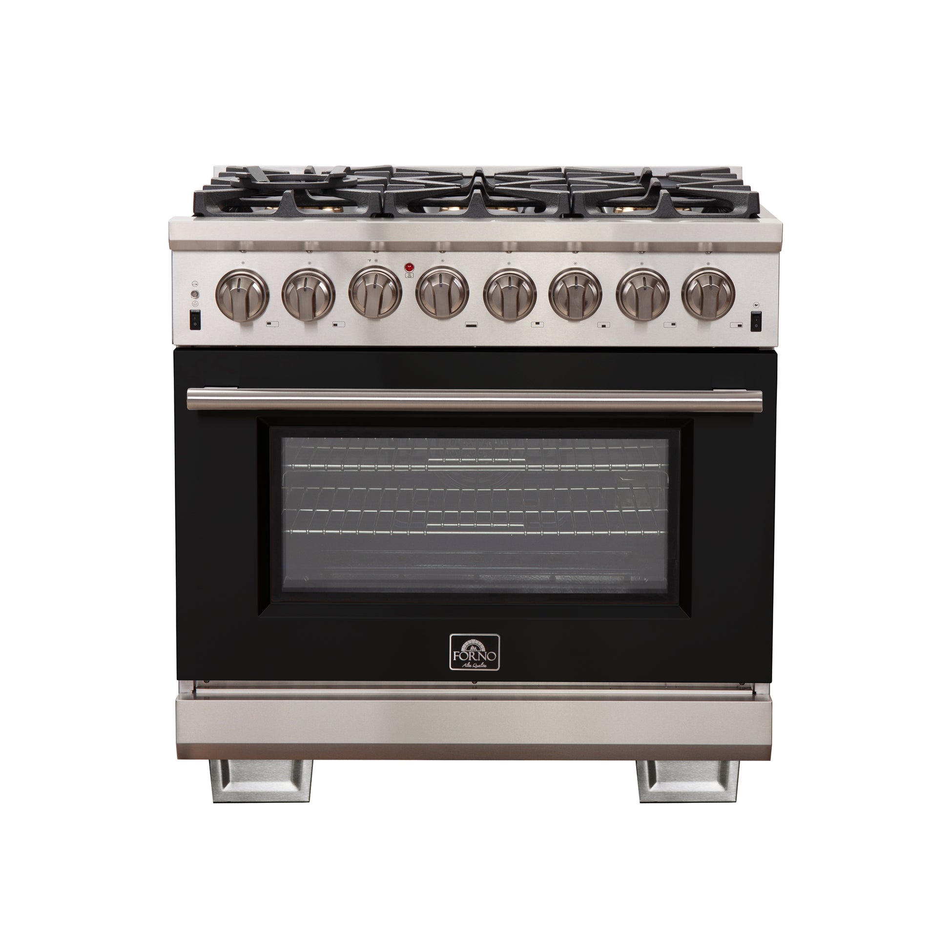 Forno Capriasca 36-Inch Freestanding Dual Fuel Range, 6 Burners, True Convection Oven, Black Door
