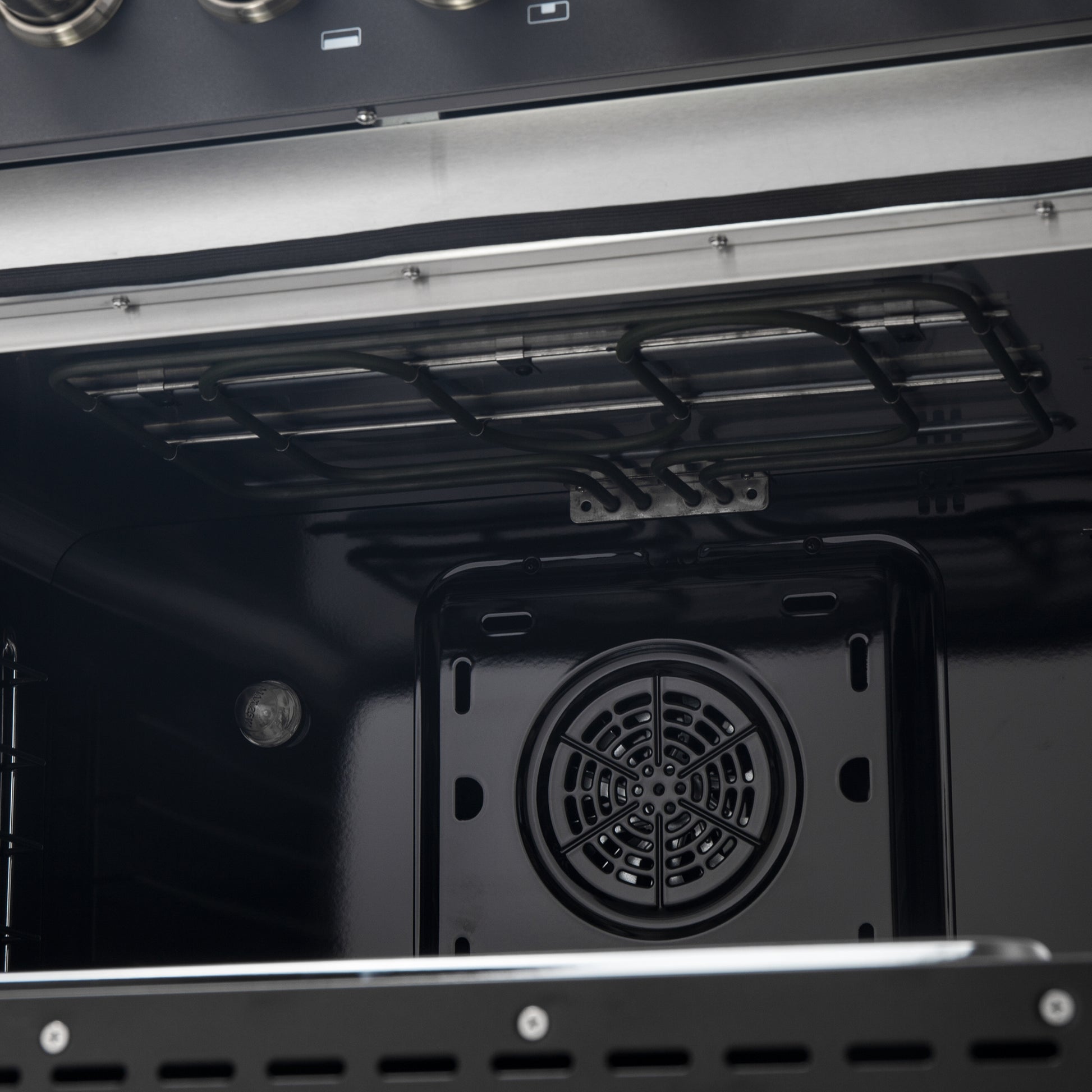 Forno Galiano 36-inch Dual Fuel Range in Black & Antique Brass Design, 6 Sealed Burners 83,000 BTU, 5.36 cu.ft. True Convection Oven