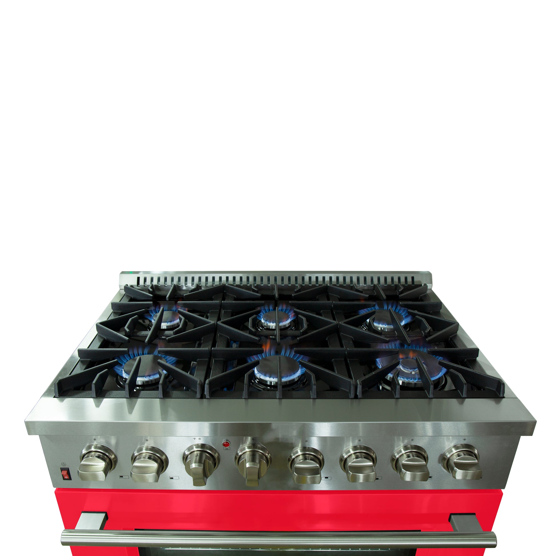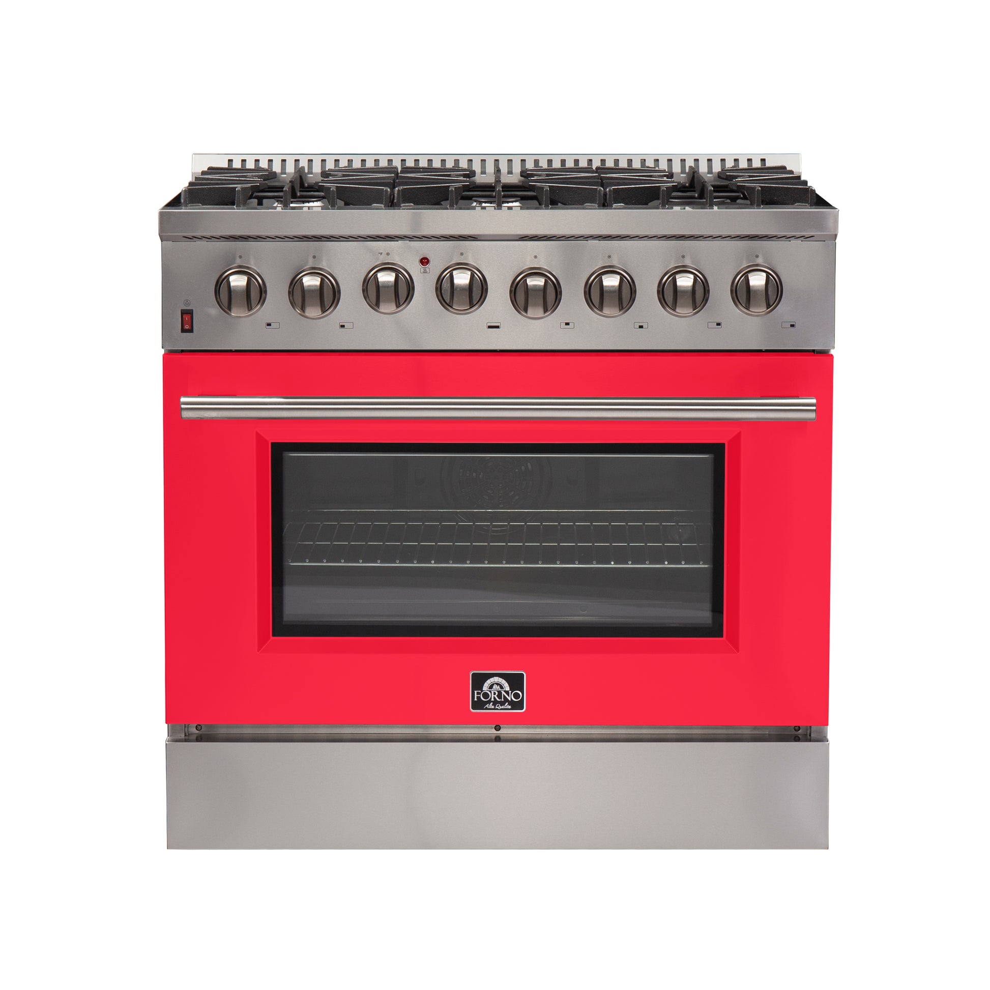 Forno Galiano 36-Inch Freestanding Dual Fuel Range, 6 Burners, Double Convection Ovens, Red Door