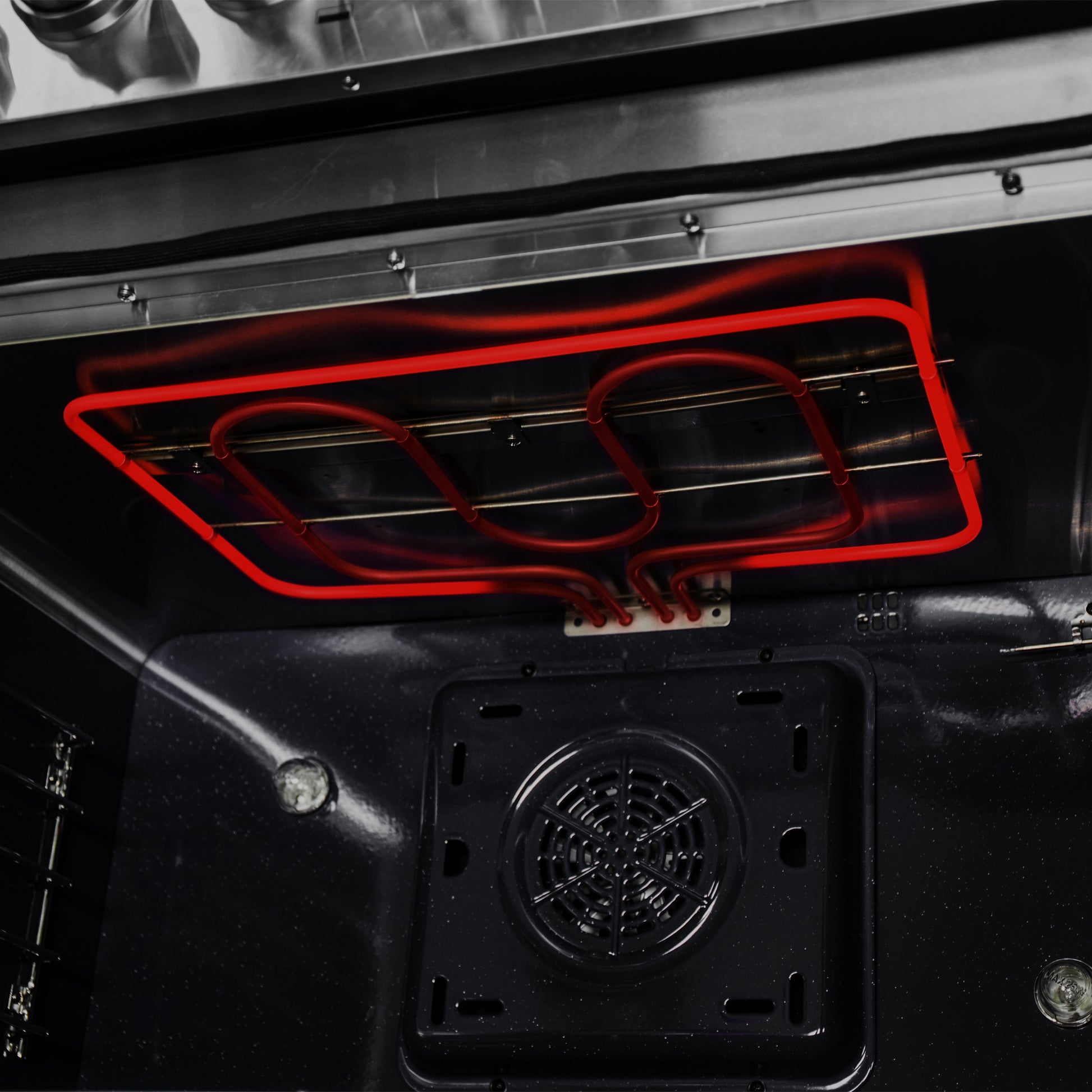 * 2 x 4.32 Cu.Ft True Convection Fan Oven with 6,300 Watt Total Broil and Bake output each.