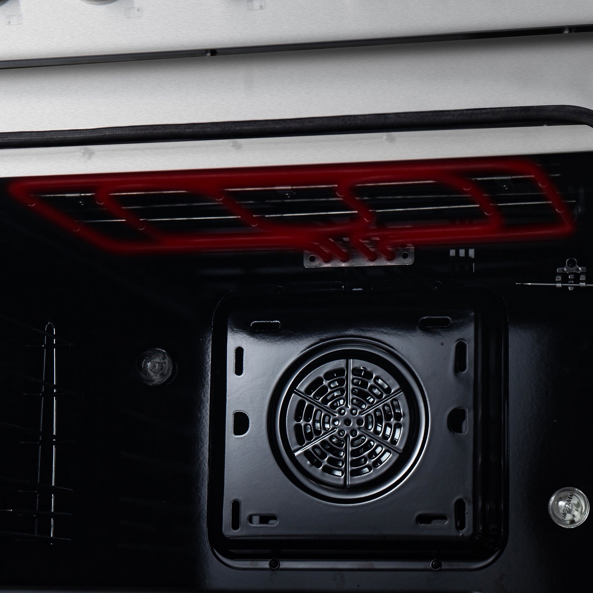 * 4.32 Cu.Ft. True Convection Fan Oven with a total of 6,300 watts of combined convection, baking, and broiling power.