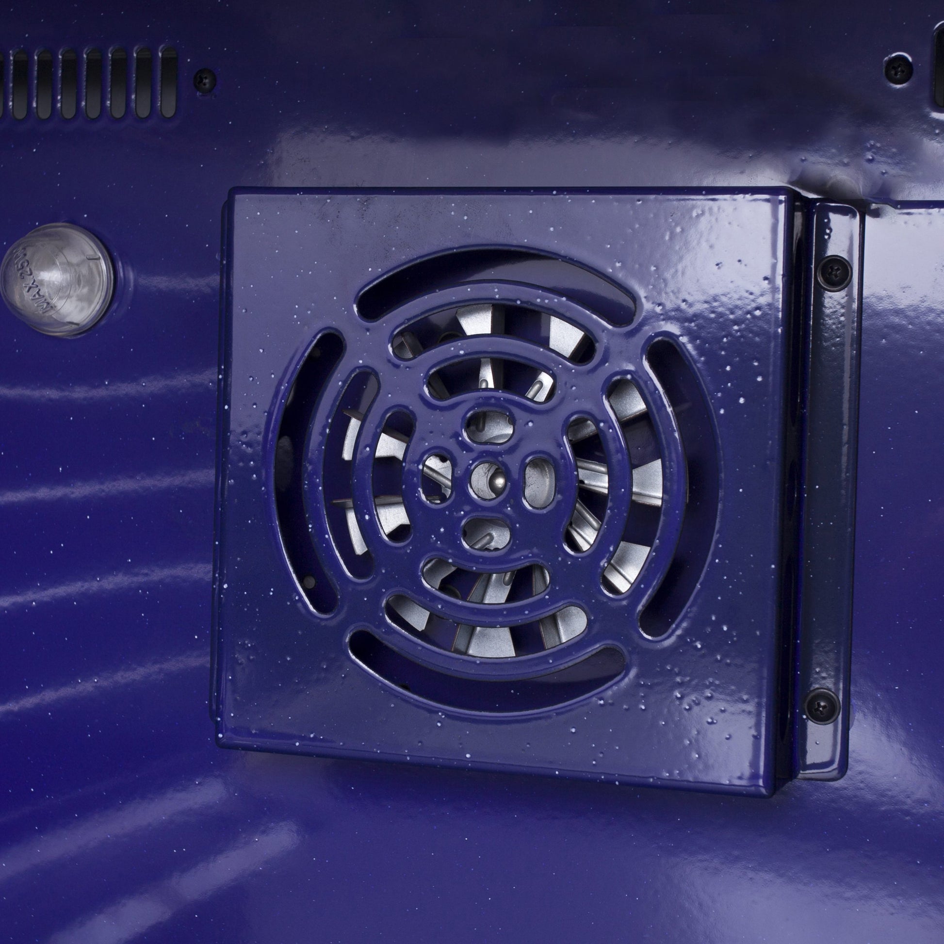 * Speckled blue enamel oven of 4.32 Cu.Ft with convection fan & 30,000 BTU Total Broil and Bake output