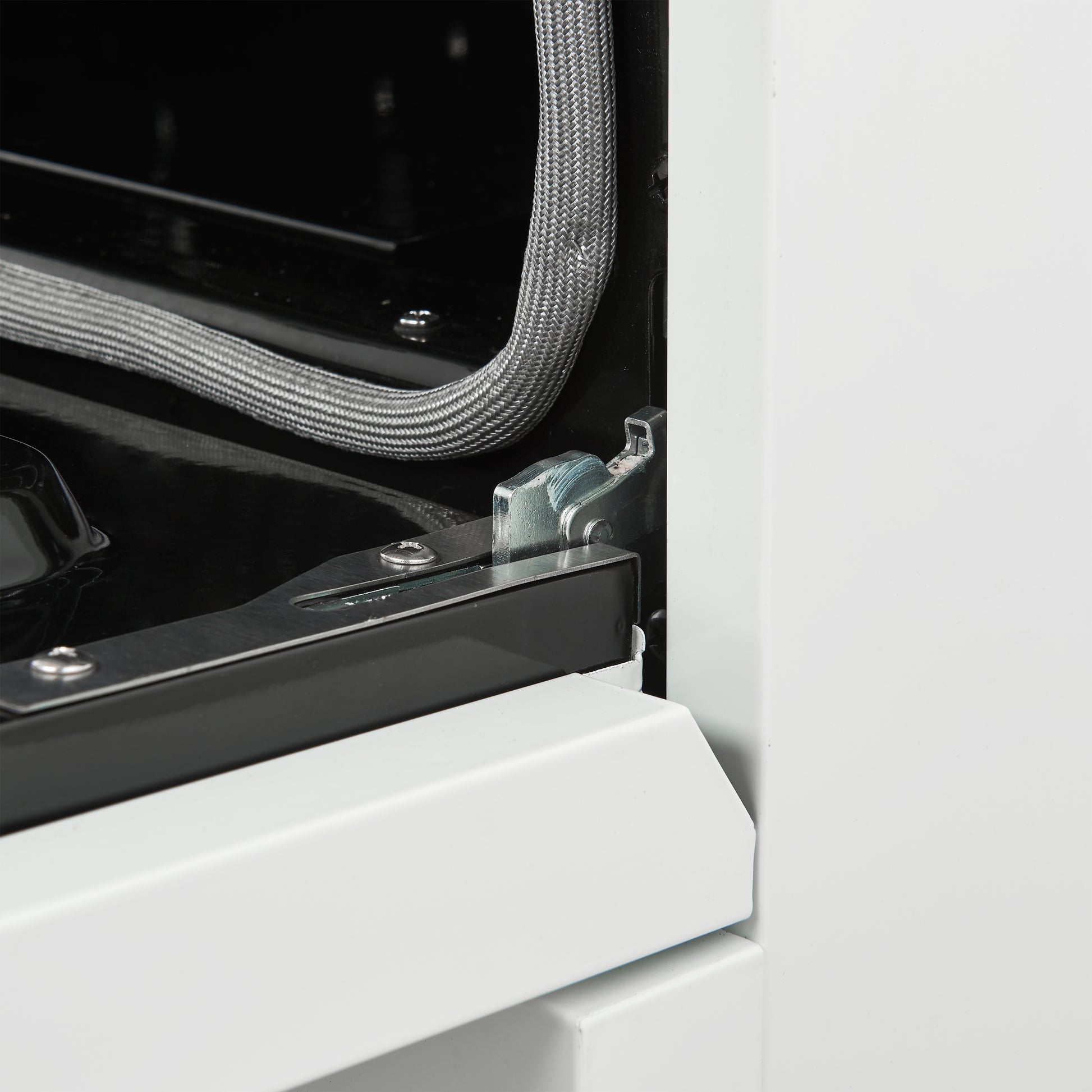 * Ceramic glass cooktop ensures even heat distribution and allows smooth movement of cookware, enhancing cooking efficiency.
