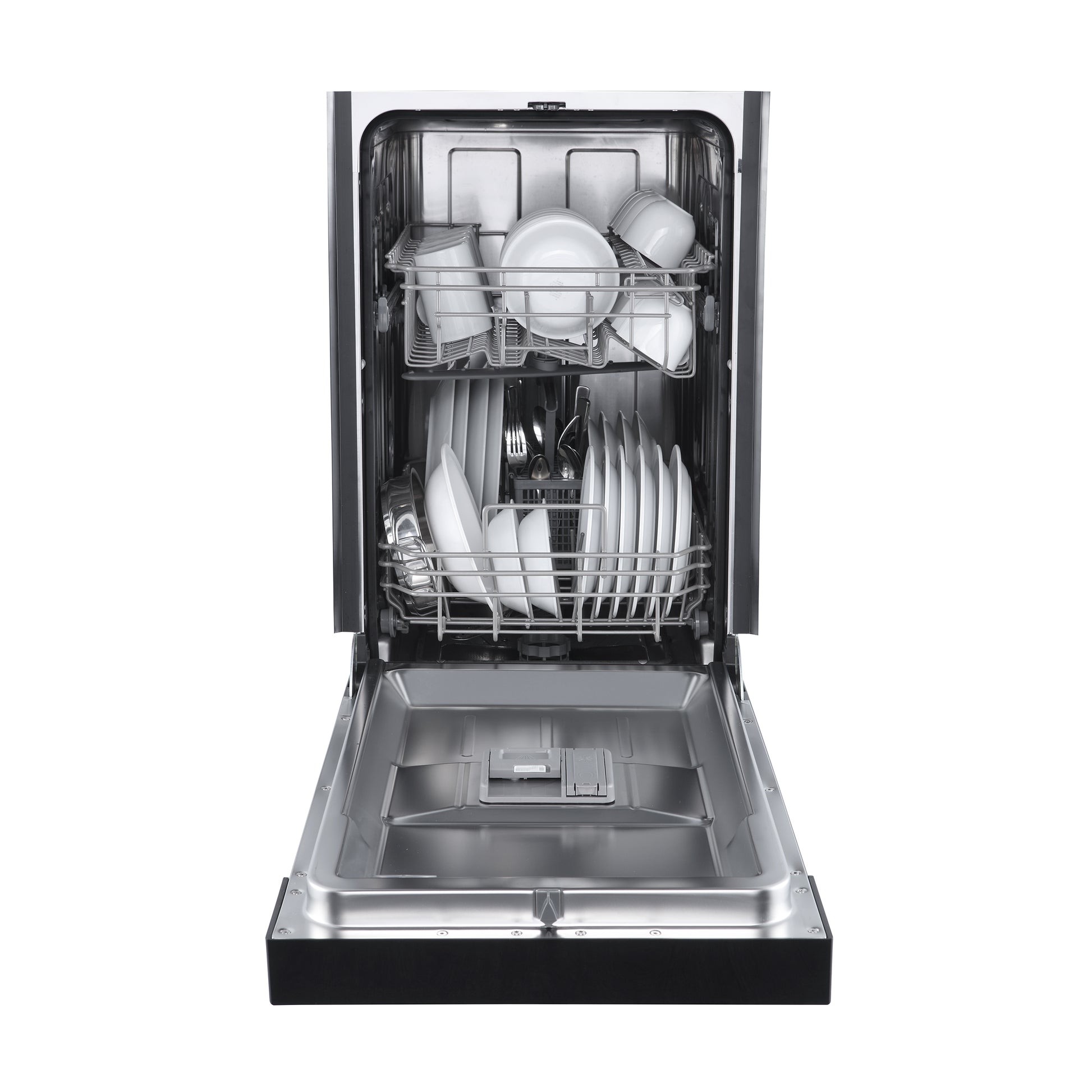 * Easy-to-use front control panel with multiple wash cycles, including a sanitize option for optimal cleaning.
