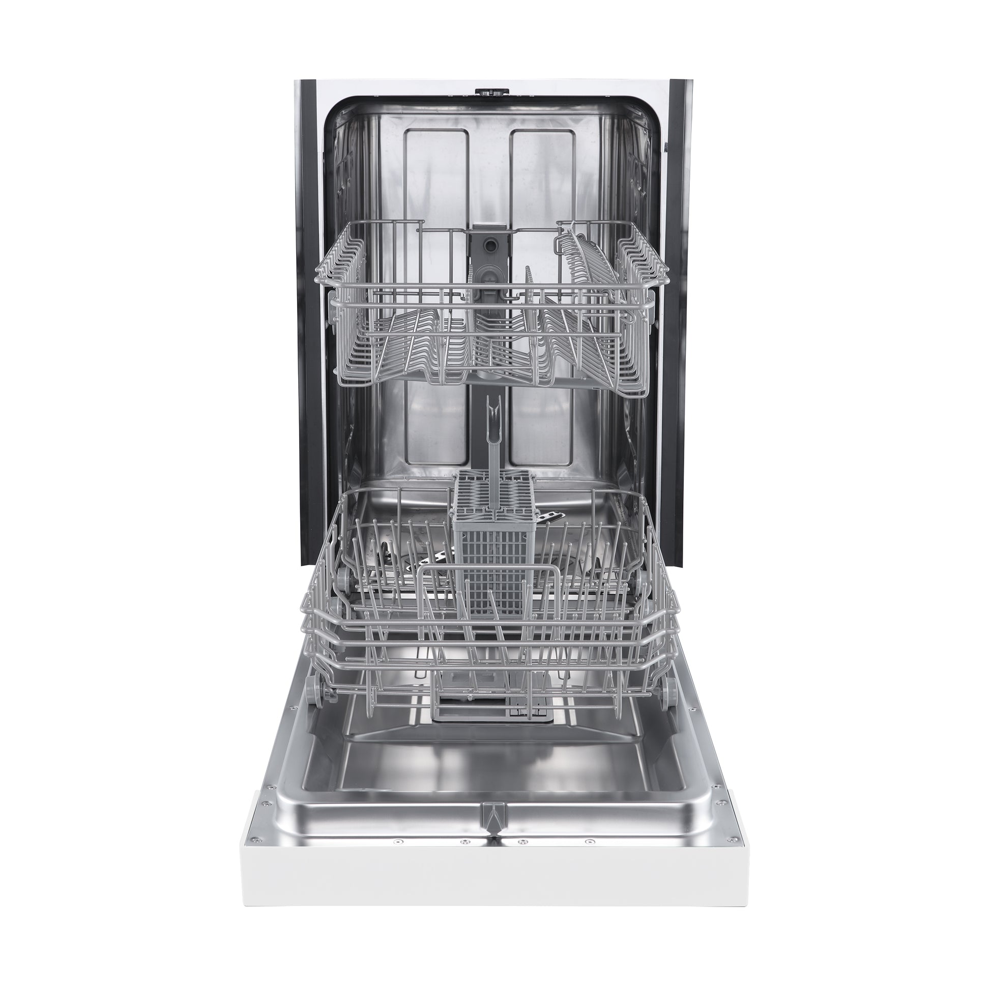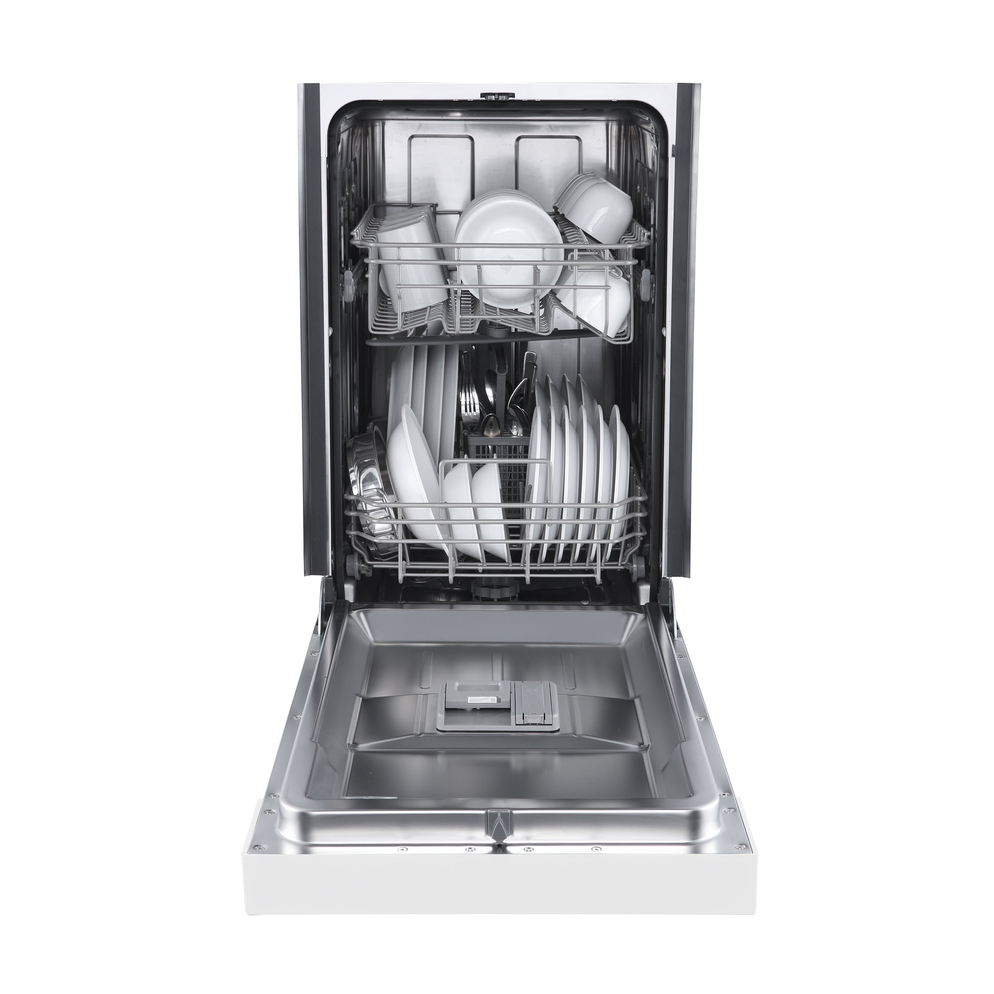 * Easy-to-use front control panel with multiple wash cycles, including a sanitize option for optimal cleaning.