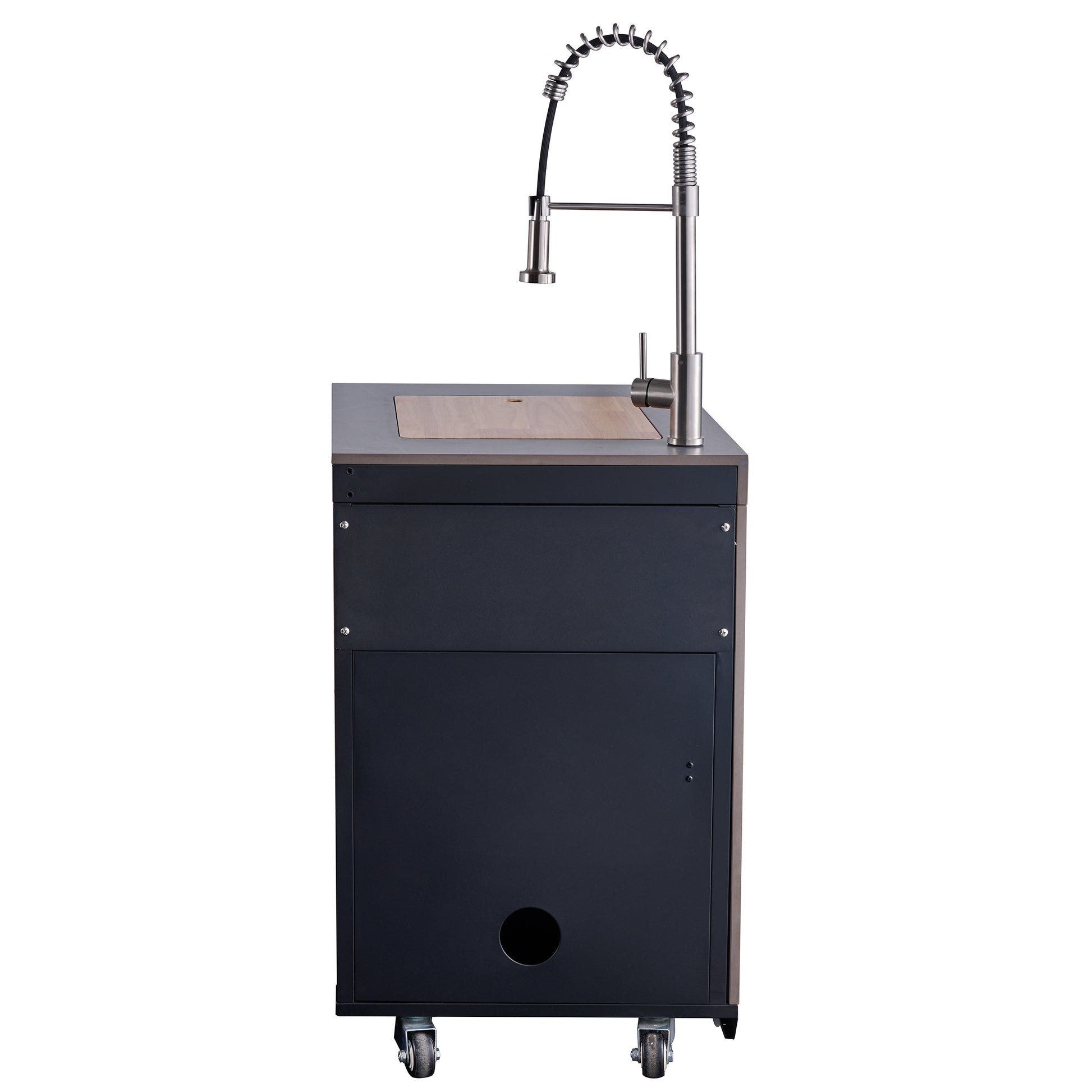 Forno Rimini Outdoor Kitchen 30" BBQ 62,600 BTU, 3 Burners with Sear & Rotisserie, 2.4 cu.ft. Beverage Center, Stainless Steel Sink, Black Cabinets & Gray Sintered Stone Countertop